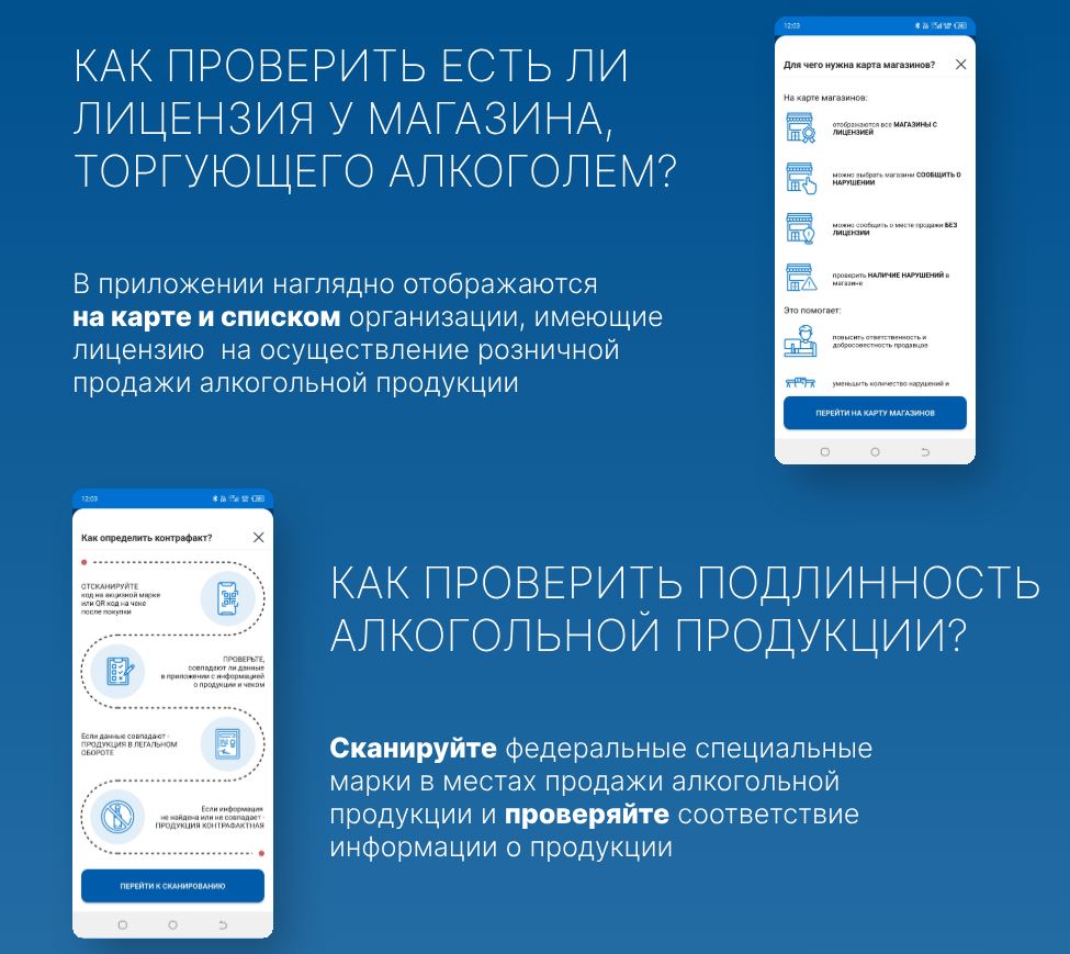 Мобильное приложение дает возможность покупателю определить легальность алкогольной продукции по данным из единой государственной автоматизированной информационной системы (ЕГАИС), определить легальность продажи алкогольной продукции в торговой точке, посмотреть на карте места продажи такой продукции, а также сообщить о нарушении в Федеральную службу по контролю за алкогольным и табачным рынками.